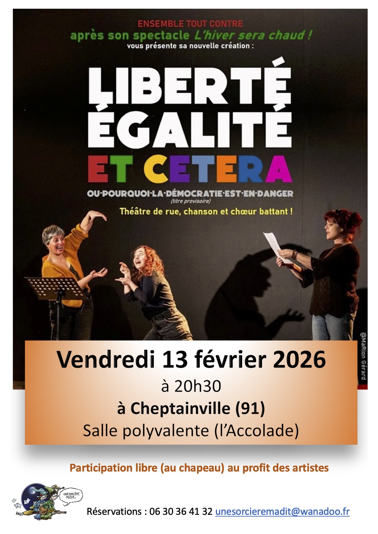 Magnifique soirée ce samedi 17 novembre... Les sorcières accueillaient "la sale gamine" pour son spectacle "La chasse est ouverte". Le public s'est retrouvé au cœur d’un tribunal populaire en chansons et en accordéon où il [...]